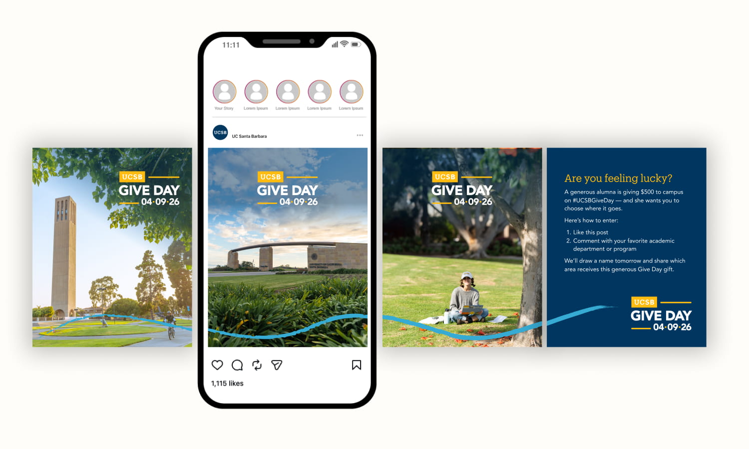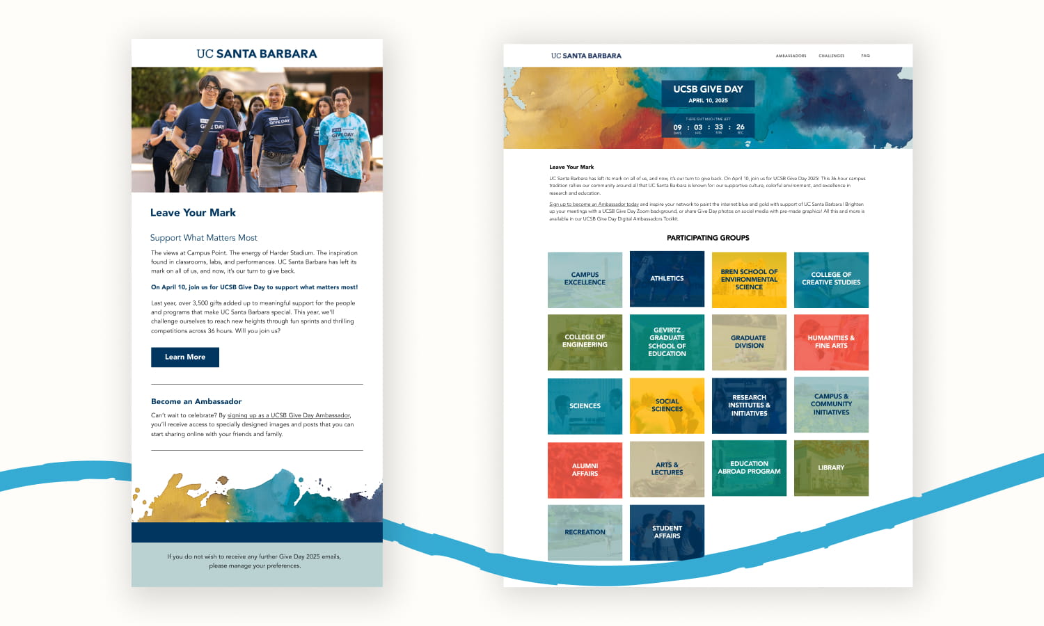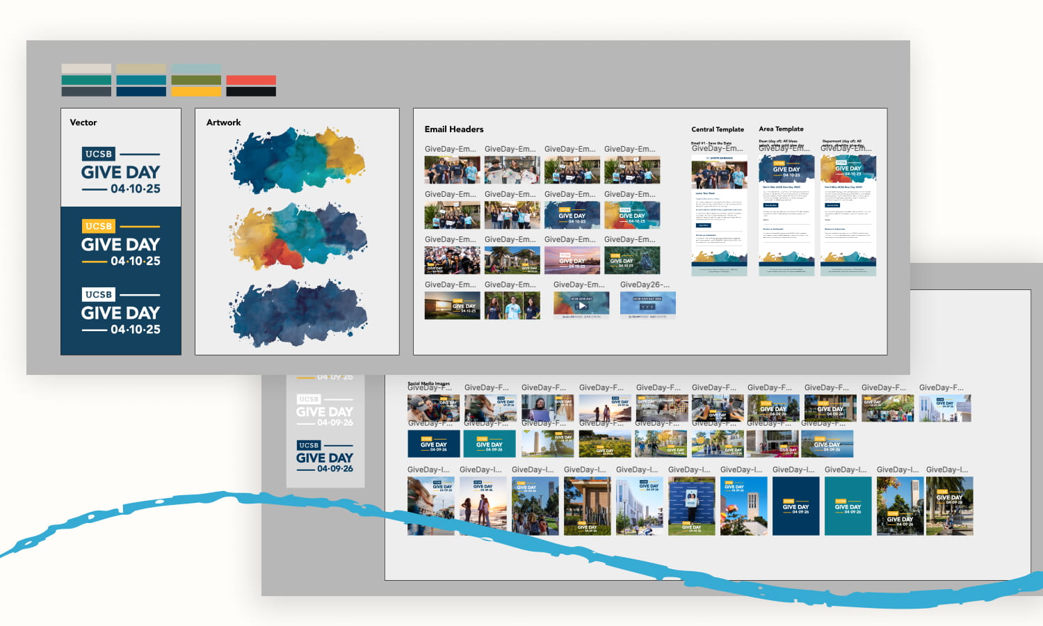 I was tasked with designing the digital assets for UCSB Give Day 2026. Give Day is a 36-hour digital fundraising event celebrating the UC Santa Barbara journey, rallying support for the university while uniting the community near and far. This event champions UCSB's beauty, academic excellence, and high-impact research. My role was to bring that spirit to life visually across every digital touchpoint, from email inboxes to social media feeds.